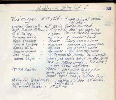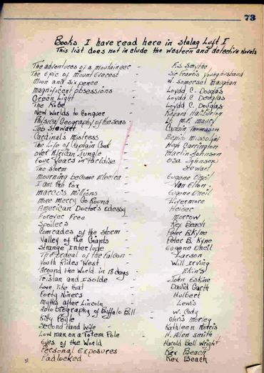 My dad, like most POWs, spent a lot of time reading books, drawing sketches, and writing letters. They also dreamed of being home and many tried hard to escape. Shown below are a few well publicized photos of Stalag Luft 1, but also images from my dad's YMCA Wartime Log book, and other items from his collection.